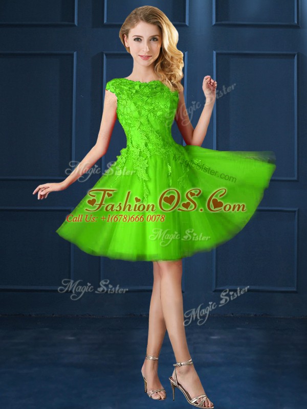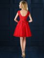 Cap Sleeves Lace Up Knee Length Lace and Appliques Dama Dress for Quinceanera