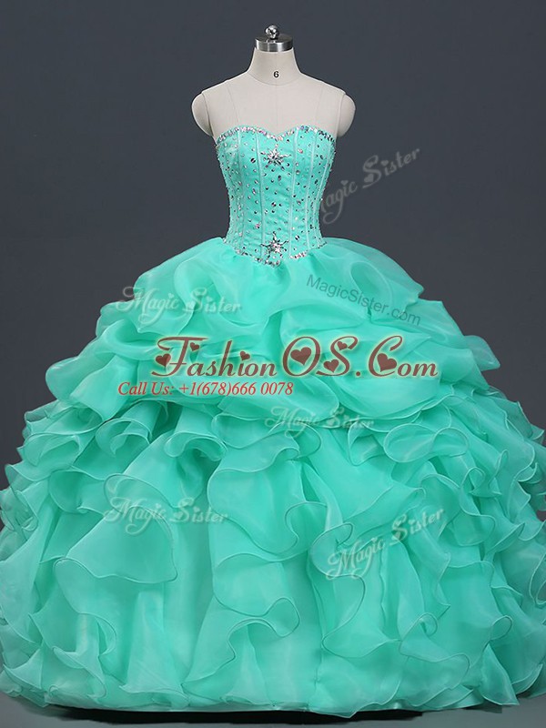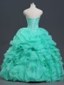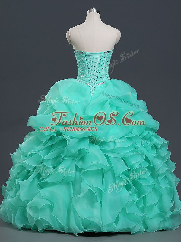 Captivating Apple Green Sleeveless Beading and Ruffles and Pick Ups Floor Length 15th Birthday Dress