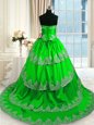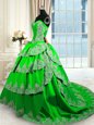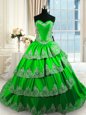 Home >  Quinceanera Dresses >  Unique Quinceanera Dresses > Captivating Ball Gowns Sweetheart Sleeveless Taffeta With Train Court Train Lace Up Beading and Appliques and Ruffled Layers Quince Ball Gowns