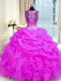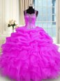 Home >  Quinceanera Dresses >  15 Quinceanera Dresses > Captivating Fuchsia Sleeveless Beading and Ruffled Layers Floor Length Quinceanera Gown