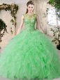 Captivating Green Scoop Neckline Beading and Ruffles Quinceanera Dresses Sleeveless Lace Up