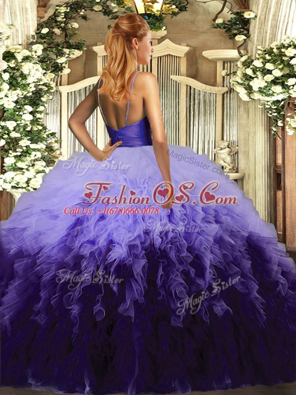 Captivating Multi-color Backless V-neck Ruffles Quinceanera Gowns Organza Sleeveless
