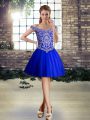 Captivating Off The Shoulder Sleeveless Vestidos de Quinceanera Brush Train Beading Royal Blue Tulle