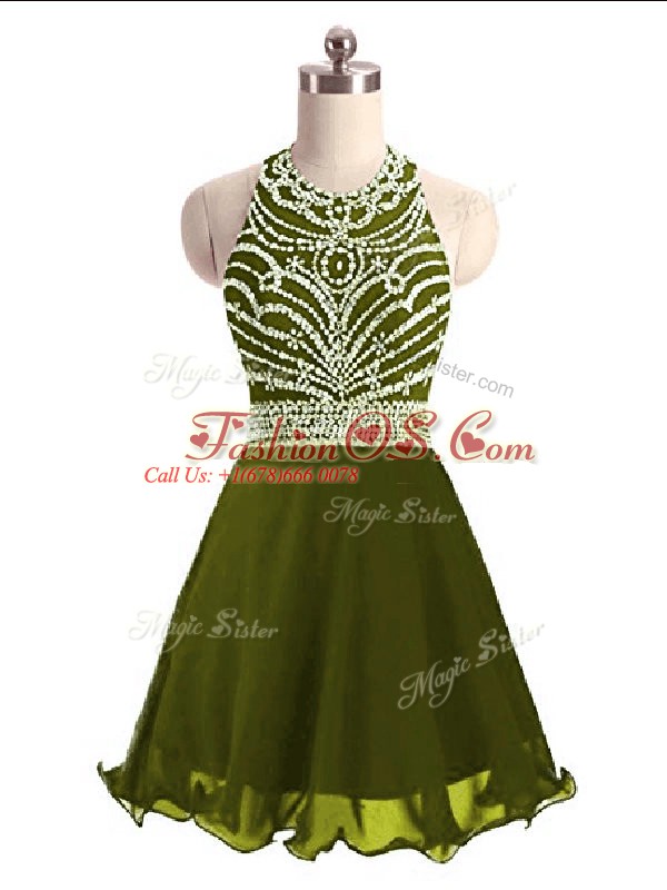 Home >  Prom Dresses >  Fashionable Prom Dresses > Captivating Olive Green Lace Up Prom Dresses Beading Sleeveless Mini Length
