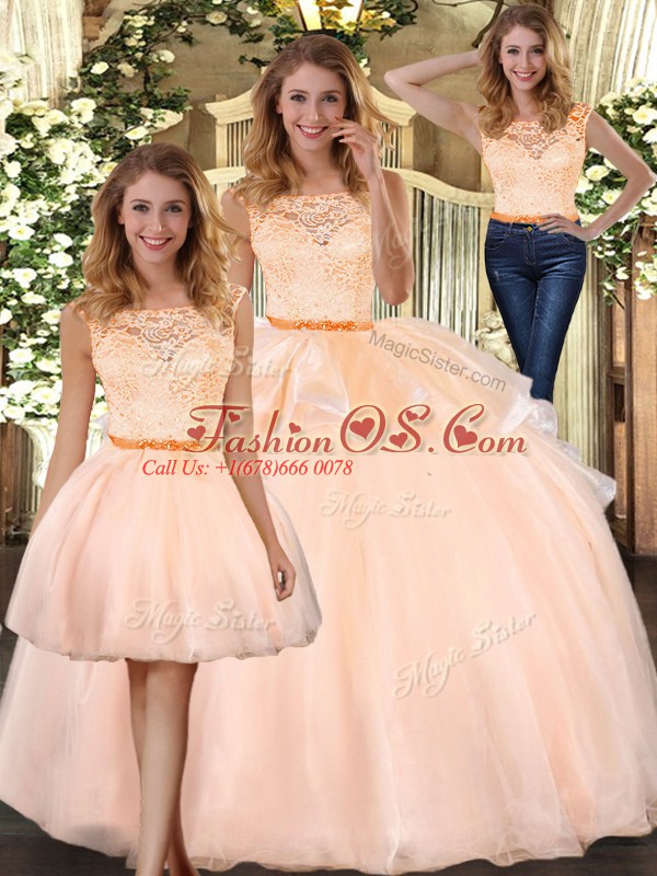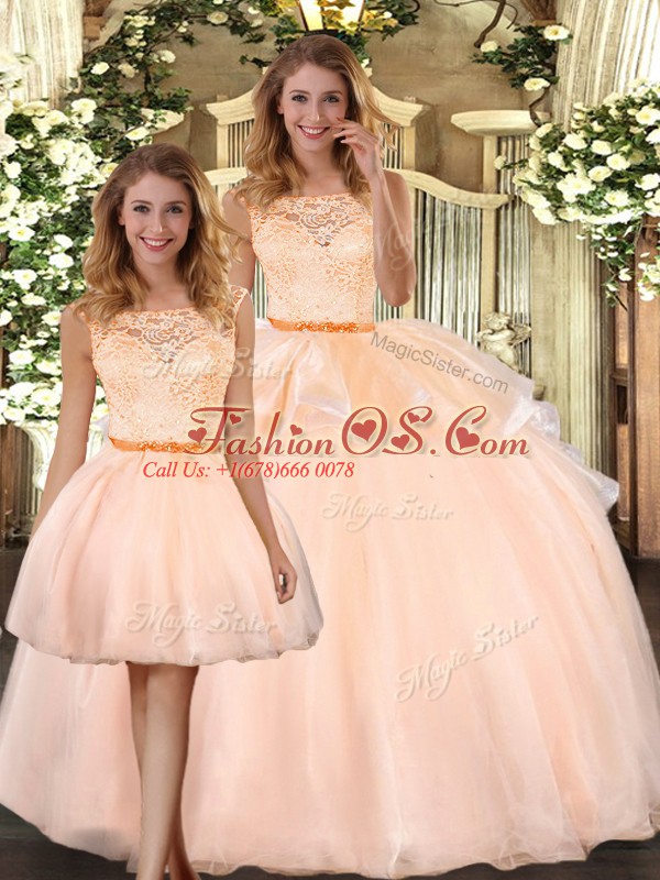 Home >  Quinceanera Dresses >  Detachable Quinceanera Skirts > Captivating Peach Three Pieces Lace 15 Quinceanera Dress Zipper Organza Sleeveless Floor Length
