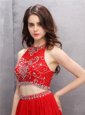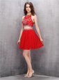 Captivating Red Chiffon Zipper Scoop Sleeveless Mini Length Prom Dresses Beading