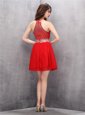 Home >  Prom Dresses >  Plus Size Prom Dresses > Captivating Red Chiffon Zipper Scoop Sleeveless Mini Length Prom Dresses Beading
