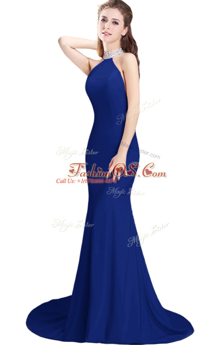 Home >  Prom Dresses >  Perfect Prom Dresses > Captivating Royal Blue Sleeveless Beading Side Zipper Prom Gown