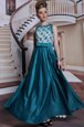 Captivating Scalloped Teal Satin Clasp Handle Evening Dress Sleeveless Floor Length Beading and Appliques