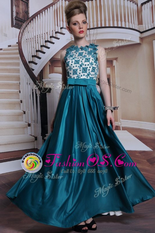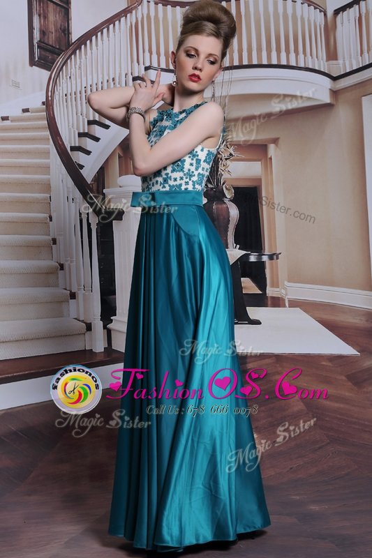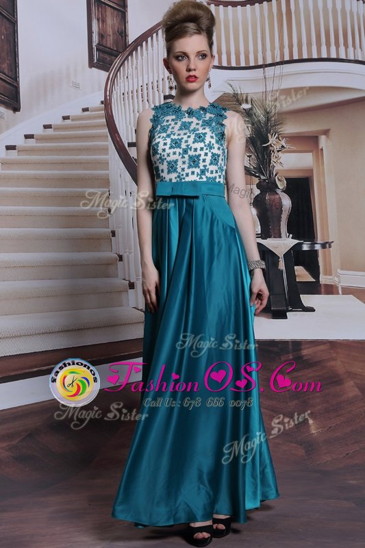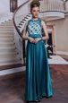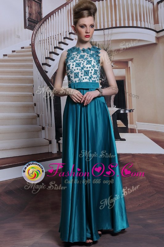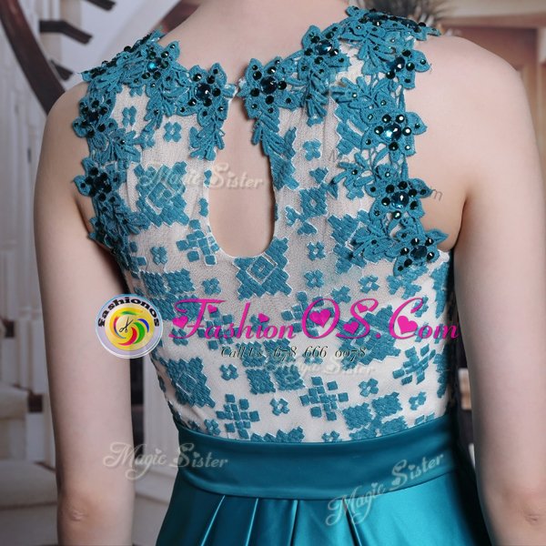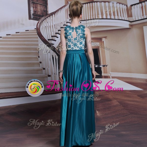 Home >  Prom Dresses >  Fashionable Prom Dresses > Captivating Scalloped Teal Satin Clasp Handle Evening Dress Sleeveless Floor Length Beading and Appliques