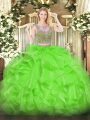 Captivating Scoop Sleeveless Organza Sweet 16 Dresses Beading and Ruffles Lace Up