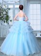 Home >  Quinceanera Dresses >  Clearance Quinceanera Dresses > Captivating SeeThrough Floor Length Light Blue Ball Gown Prom Dress Organza Short Sleeves Appliques and Ruffled Layers