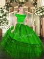 Home >  Quinceanera Dresses >  Cute Quinceanera Dresses > Captivating Short Sleeves Organza and Taffeta Floor Length Zipper 15th Birthday Dress in Green with Embroidery and Ruffled Layers