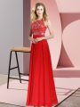 Captivating Sleeveless Chiffon Floor Length Backless Prom Dress in Red with Beading