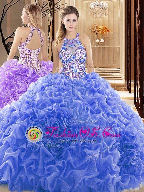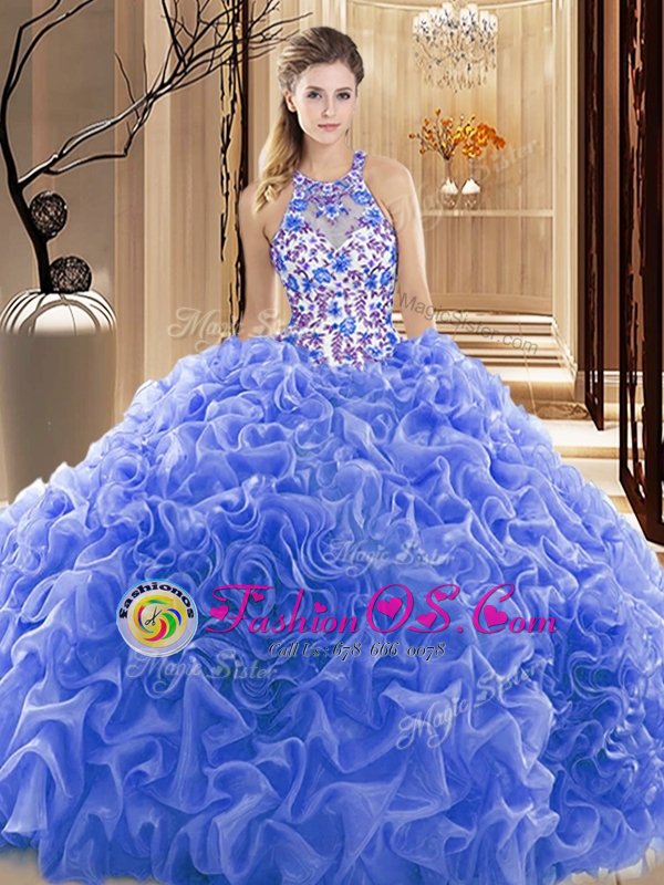 Home >  Quinceanera Dresses >  Cheap Quinceanera Dresses > Captivating Sleeveless Court Train Backless Embroidery and Ruffles Sweet 16 Quinceanera Dress