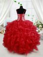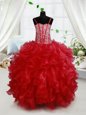 Captivating Sleeveless Lace Up Floor Length Beading and Ruffles Toddler Flower Girl Dress