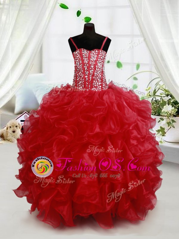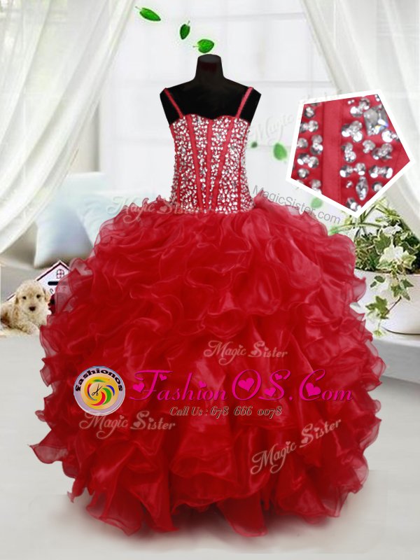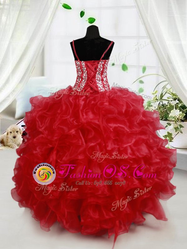 Home >  Special Occasion Dresses >  Mini Quinceanera Dresses > Captivating Sleeveless Lace Up Floor Length Beading and Ruffles Toddler Flower Girl Dress