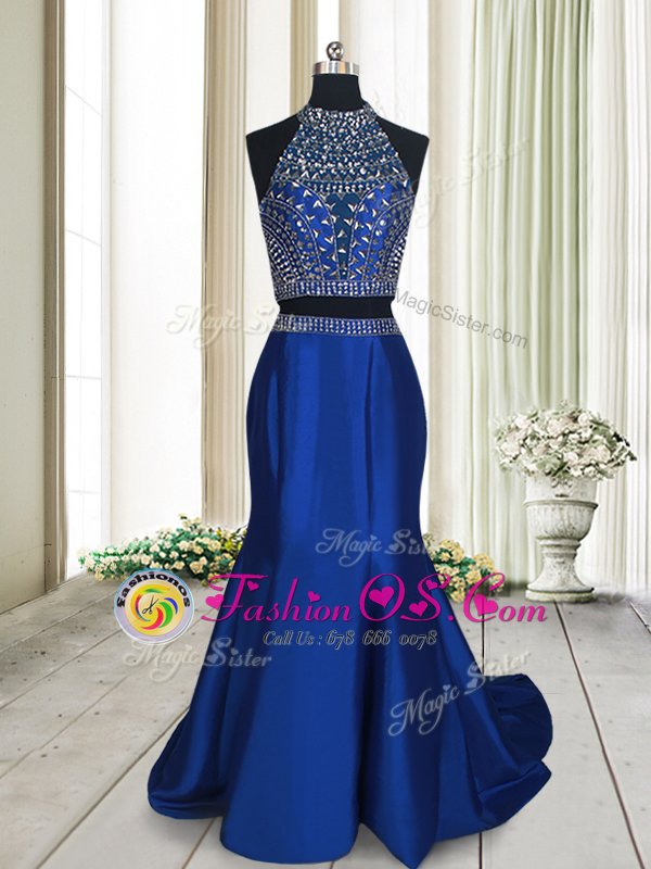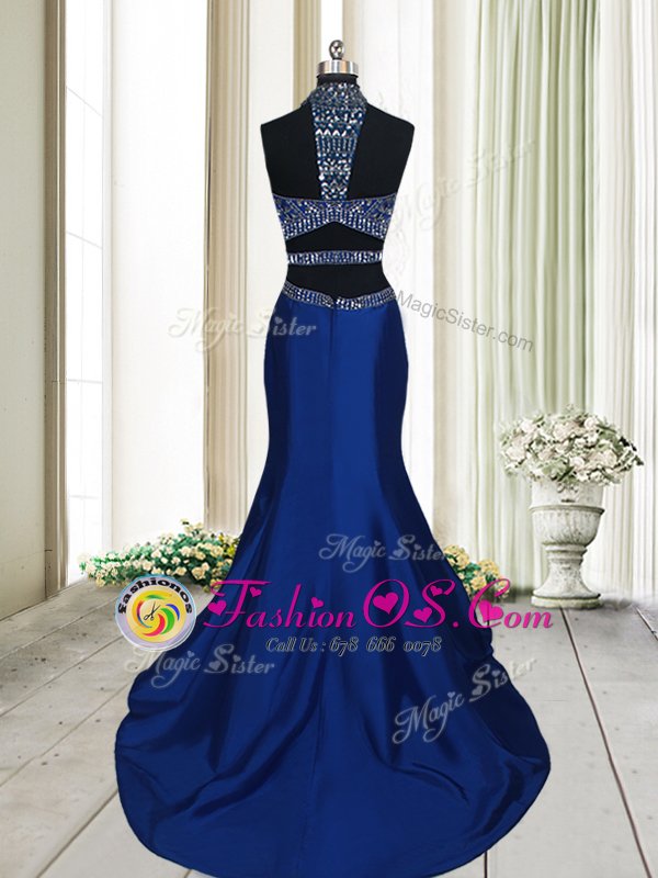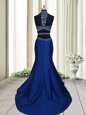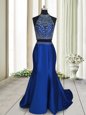 Captivating Sleeveless Sweep Train Beading Criss Cross Celebrity Prom Dress