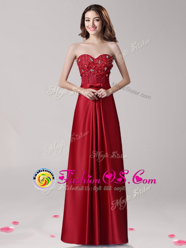 Home >  Prom Dresses >  Perfect Prom Dresses > Captivating Sweetheart Sleeveless Elastic Woven Satin Prom Evening Gown Beading and Appliques and Bowknot Zipper