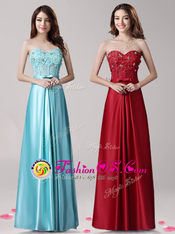 Captivating Sweetheart Sleeveless Elastic Woven Satin Prom Evening Gown Beading and Appliques and Bowknot Zipper