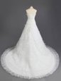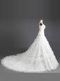 Captivating White Lace Up Wedding Gown Beading and Appliques and Ruffled Layers Sleeveless With Train Court Train