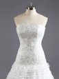 Home >  Wedding Dresses >  Low Cost Wedding Dresses > Captivating White Lace Up Wedding Gown Beading and Appliques and Ruffled Layers Sleeveless With Train Court Train