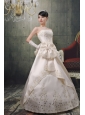 Home >  Wedding Dresses >  Affordable Wedding Dresses > Champagne A-line Applqiues Decorate Strapless Wedding Dress With Bows Satin In 2013