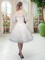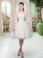 Champagne A-line Off The Shoulder Half Sleeves Tulle Knee Length Zipper Lace Homecoming Dress