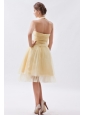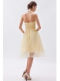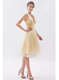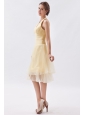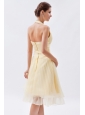 Champagne A-line / Princess Halter Ruch Prom Dress Organza Knee-length
