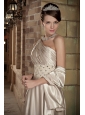 Home >  Prom Dresses >  Cheap Prom Dresses > Champagne A-Line / Princess One Shoulder Brush Train Elastic Wove Satin Beading and Ruch Prom / Evening Dress