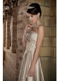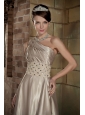 Champagne A-Line / Princess One Shoulder Brush Train Elastic Wove Satin Beading and Ruch Prom / Evening Dress