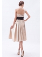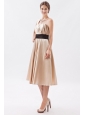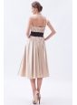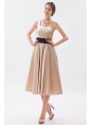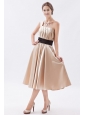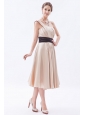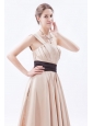 Champagne A-line / Princess One Shoulder Tea-length Satin Ruch Bridesmaid Dress