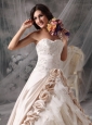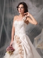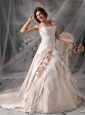 Home >  Wedding Dresses >  Elegant Wedding Dresses > Champagne A-Line / Princess Wedding Dress One Shoulder Satin Hand Flowers Chapel Train