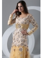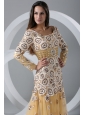 Champagne A-line Scoop Prom Dress with Long Sleeves