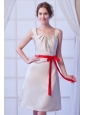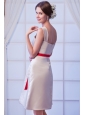 Champagne A-line Square Mini-length Satin Bow Bridesmaid Dress