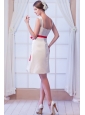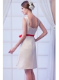 Home >  Bridesmaid Dresses >  Simple Bridesmaid Dresses > Champagne A-line Square Mini-length Satin Bow Bridesmaid Dress