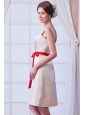 Simple yet pretty! This lovely dress features a simple bodice which is decorated with straps and a few ruches in the bust. The A-line mini-length skirt decorated with a red long bowknot ribbon adds more charming and the hidden zipper-up style brings elegance and modesty to this perfect prom gown. What a sleek, chic and fashionable dress for any formal occasions!