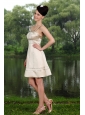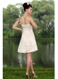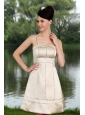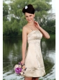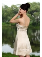 Champagne A-line Straps Mini-length Taffeta Beading Cocktail Dress