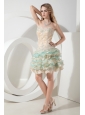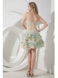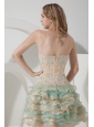 Champagne and Aqua A-line / Princess Sweetheart  Beading and Embroidery Short Prom Dress Mini-length Organza