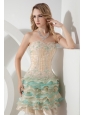 Champagne and Aqua A-line / Princess Sweetheart Beading and Embroidery Short Prom Dress Mini-length Organza
