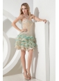 If you are looking for some special, here is the one you can choose. Sweetheart neckline with delicated bodice and rich skirt with two-tone organza tiers. The top bodice accented with exquisite appliques and lined shining beads add even more interests to the whole. Trimed layers on the skirt make the mini skirt rich and fabulous. A hidden zipper makes for easy off and on and secures the dress in place.