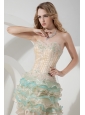 Home >  Prom Dresses >  Short Prom Dresses > Champagne and Aqua A-line / Princess Sweetheart Beading and Embroidery Short Prom Dress Mini-length Organza