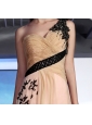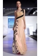 Champagne and Pink Column / Sheath One Shoulder Floor-length Chiffon Appliques Prom / Evening Dress