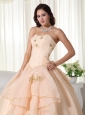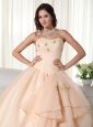Home >  Quinceanera Dresses >  Pretty Quinceanera Dresses > Champagne Ball Gown Strapless Floor-length Organza Embroidery Quinceanera Dress