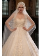 Home >  Wedding Dresses >  Perfect Wedding Dresses > Champagne Ball Gown Sweetheart Hand Made Flower Tulle Wedding Dress
