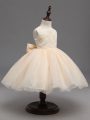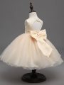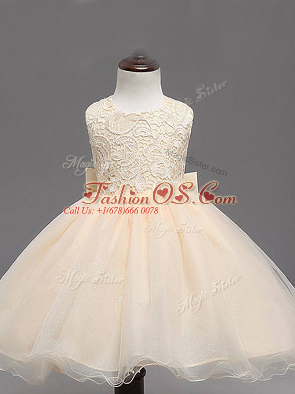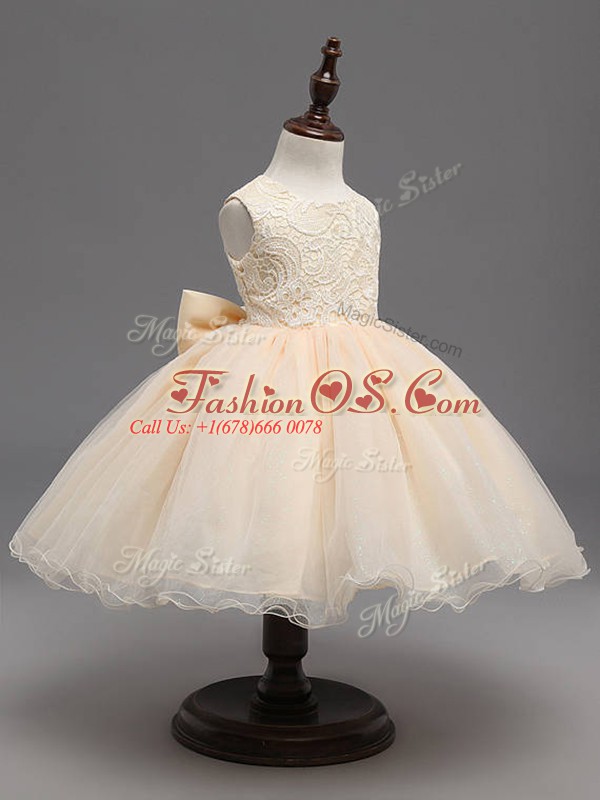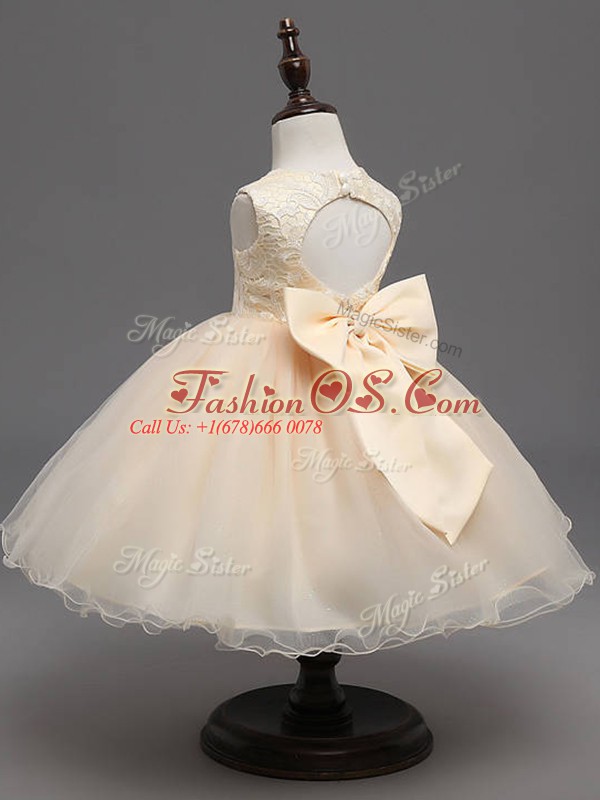 Champagne Ball Gowns Lace and Bowknot Little Girls Pageant Dress Wholesale Backless Organza Sleeveless Knee Length