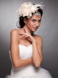 Champagne Beaded Taffeta Hand Made Flowers Headpieces