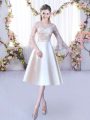 Champagne Bridesmaid Dresses Wedding Party with Lace and Belt Scoop 3 4 Length Sleeve Lace Up