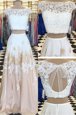Champagne Cap Sleeves Floor Length Beading and Lace Backless Prom Party Dress