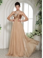 Champagne Chiffon Sweetheart Ruched Decorate Bust and Ruch 2013 Evening Celebrity Dress With Red